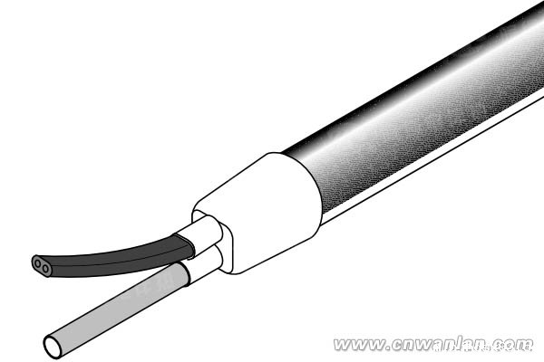 3、将密封用的热缩管套套入电伴热带烟气采样管两端,保持在外护套与剥开的电伴热带的中间部位,如图2。