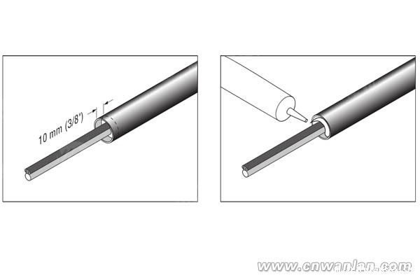 6、使用RTV密封胶密封电伴热带烟气采样管两端,保持距离在10mm,确保所有裸露的电伴热带完全密封,不会进水受潮,已得到很好的绝缘保护作用,如图4。